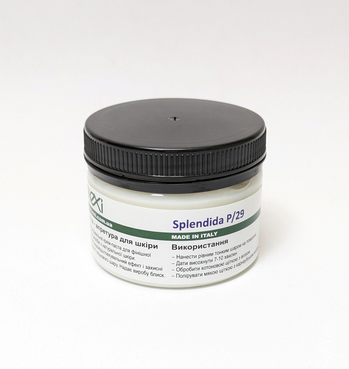 Крем апретура Splendida - крем-паста для фінішної обробки взуття та інших виробів з натуральної шкіри. Володіє відмінною полірувальною здатністю і прекрасними властивостями заповнення пор і покриття.